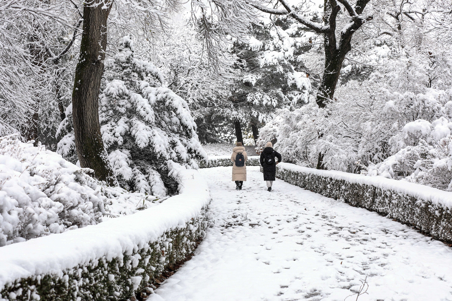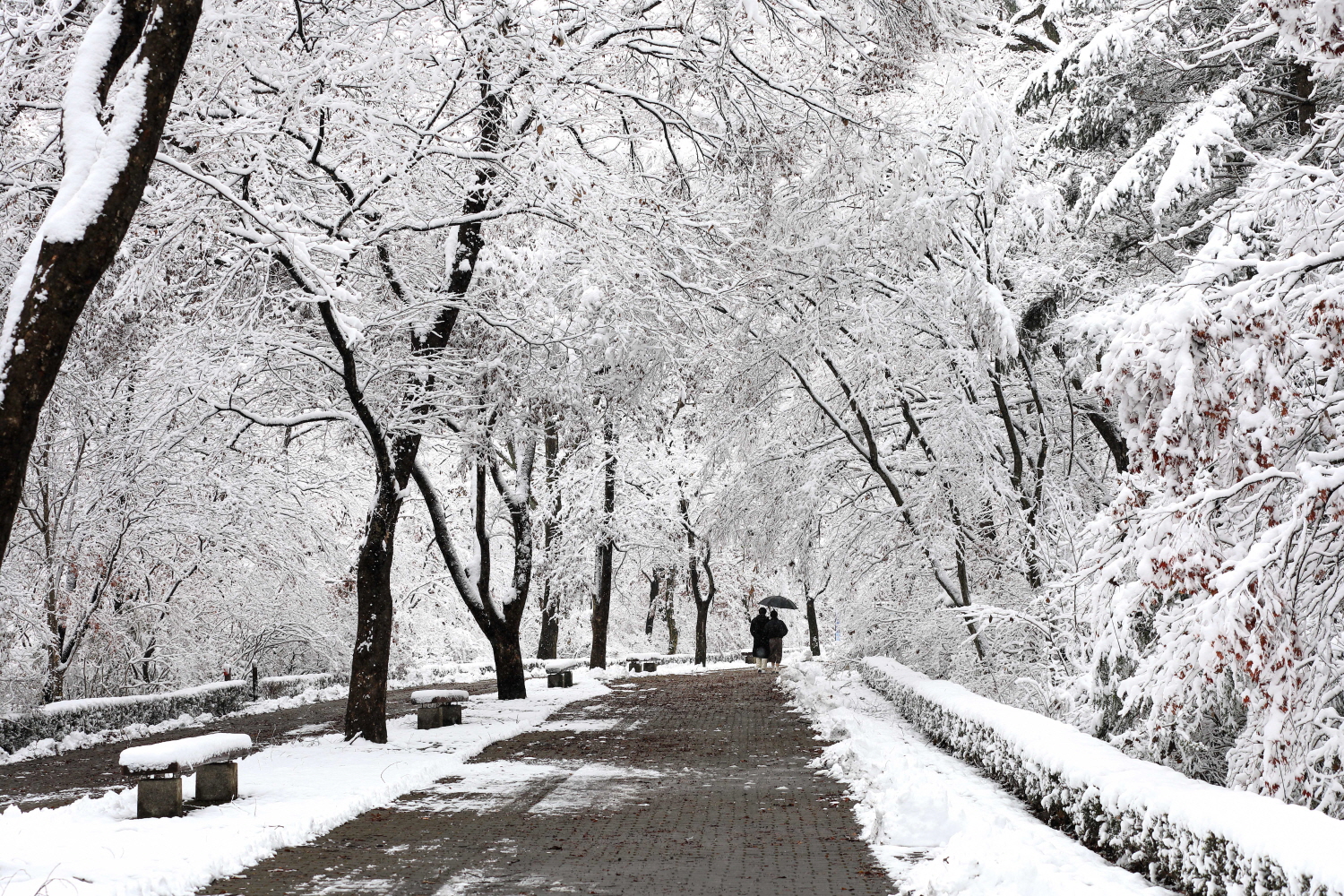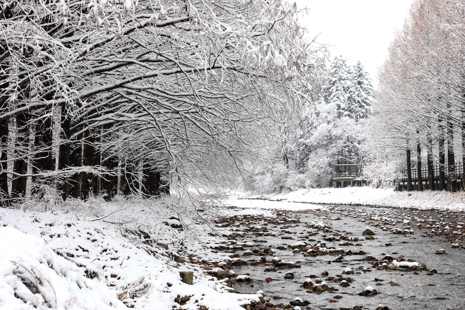 첫눈이 내린 광릉수목원의 모습입니다