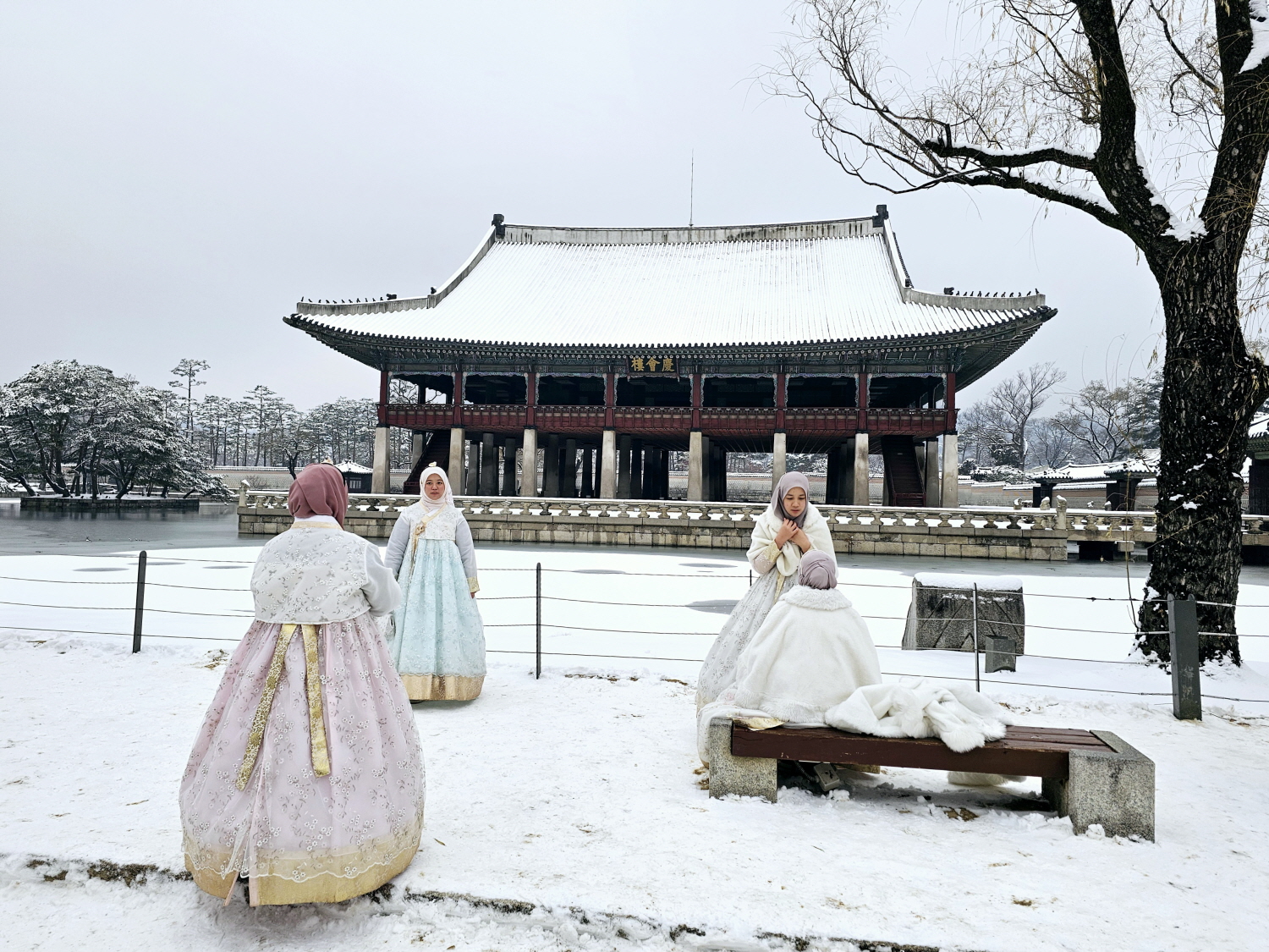 눈이 펑펑 내린후 경복궁을 찾았다, 많은 동남아지역의 관광객들이