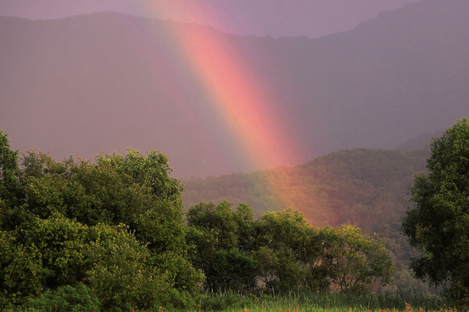 세미원 연꽃밭에 소나기가 내린후 무지개가 올랐습니다.