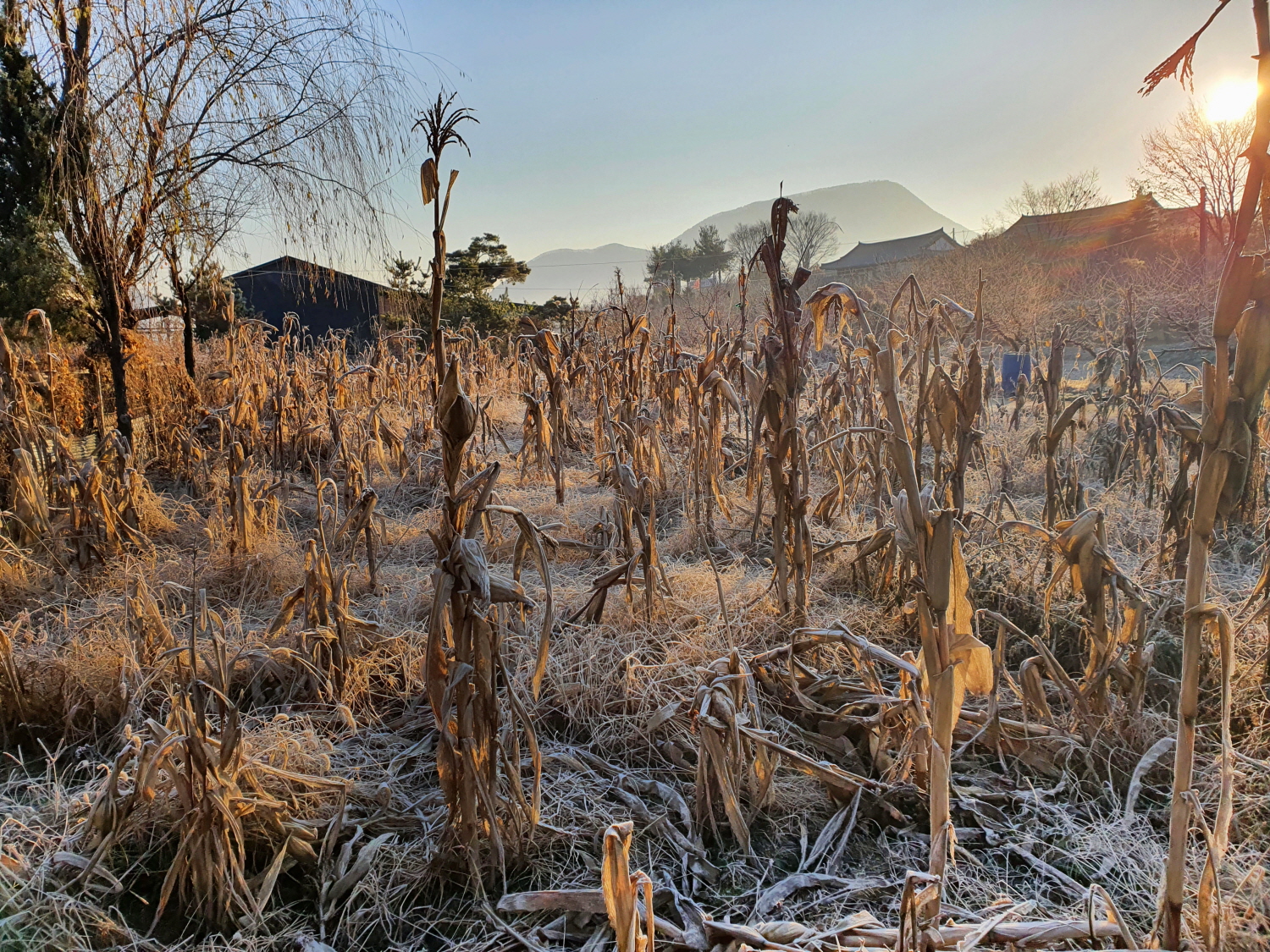 가정집 채소밭에도 대파랑 옥수수대 그리고 배추가 서리를 덮고 있더군 ~~~